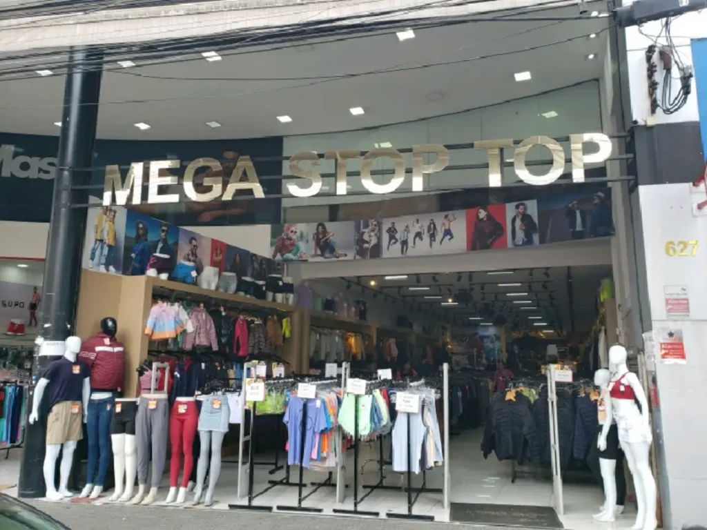 A Mega Stop atende públicos feminino e masculino com uma ampla linha de roupas jeans,sociais e casuais,incluindo jaquetas e tendências atuais.